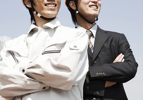 弊社では、明るく元気のいい現場作りを心掛けています。従業員一人一人が明るく元気に工事を行うことで、モチベーションも上がり、精度の高い工事ができると信じているからです。職人気質と活気あるムードで、高品質な施工を実現します。